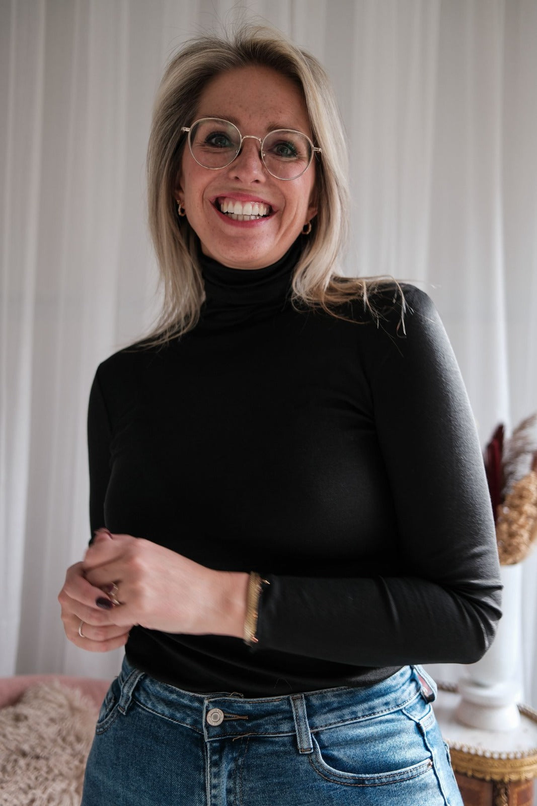 Combineer onder onze jeanskleedjes of onder een blazer, het kan allemaal! Het is geen super dikke coltrui maar eerder fijn en elegant. 🤗