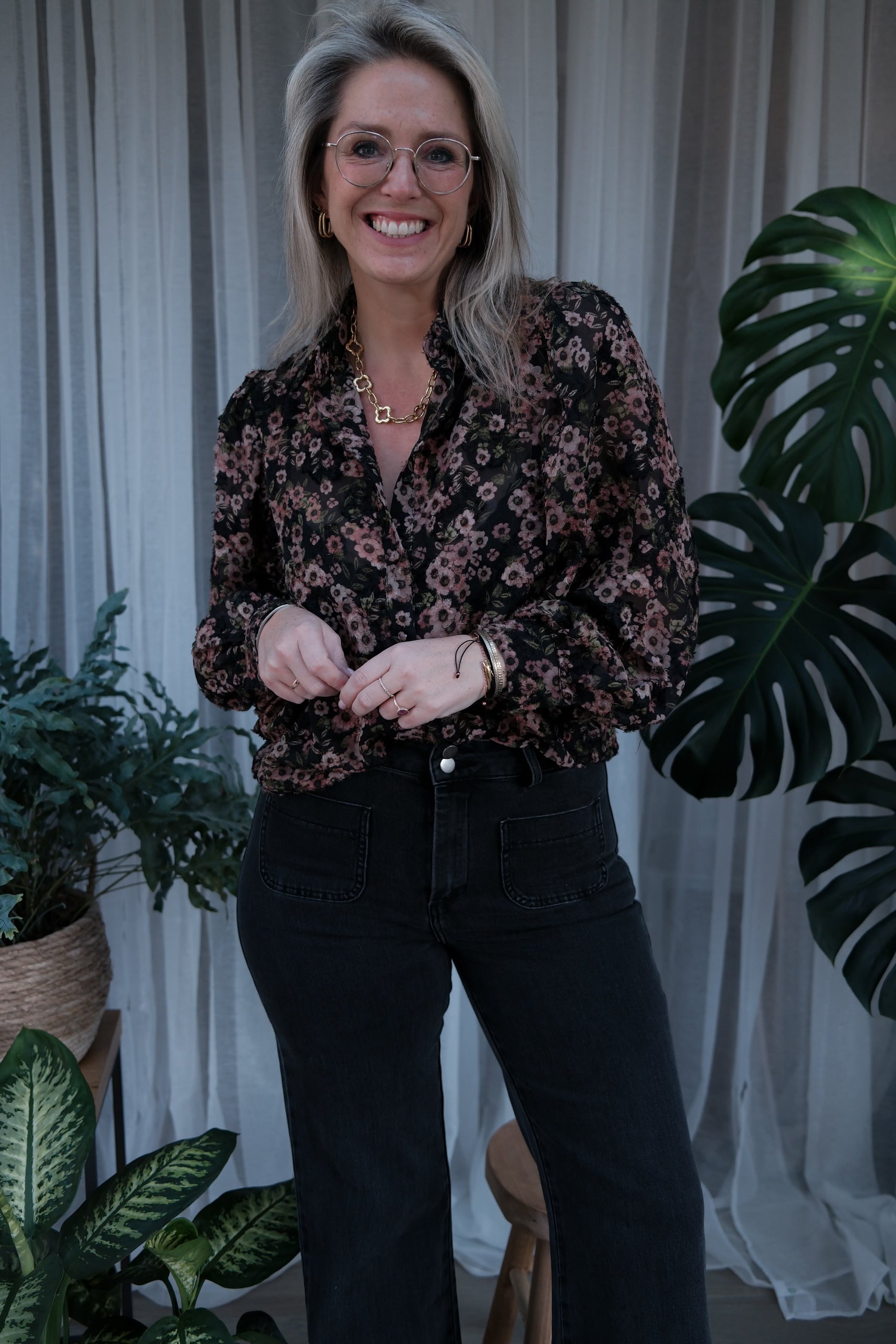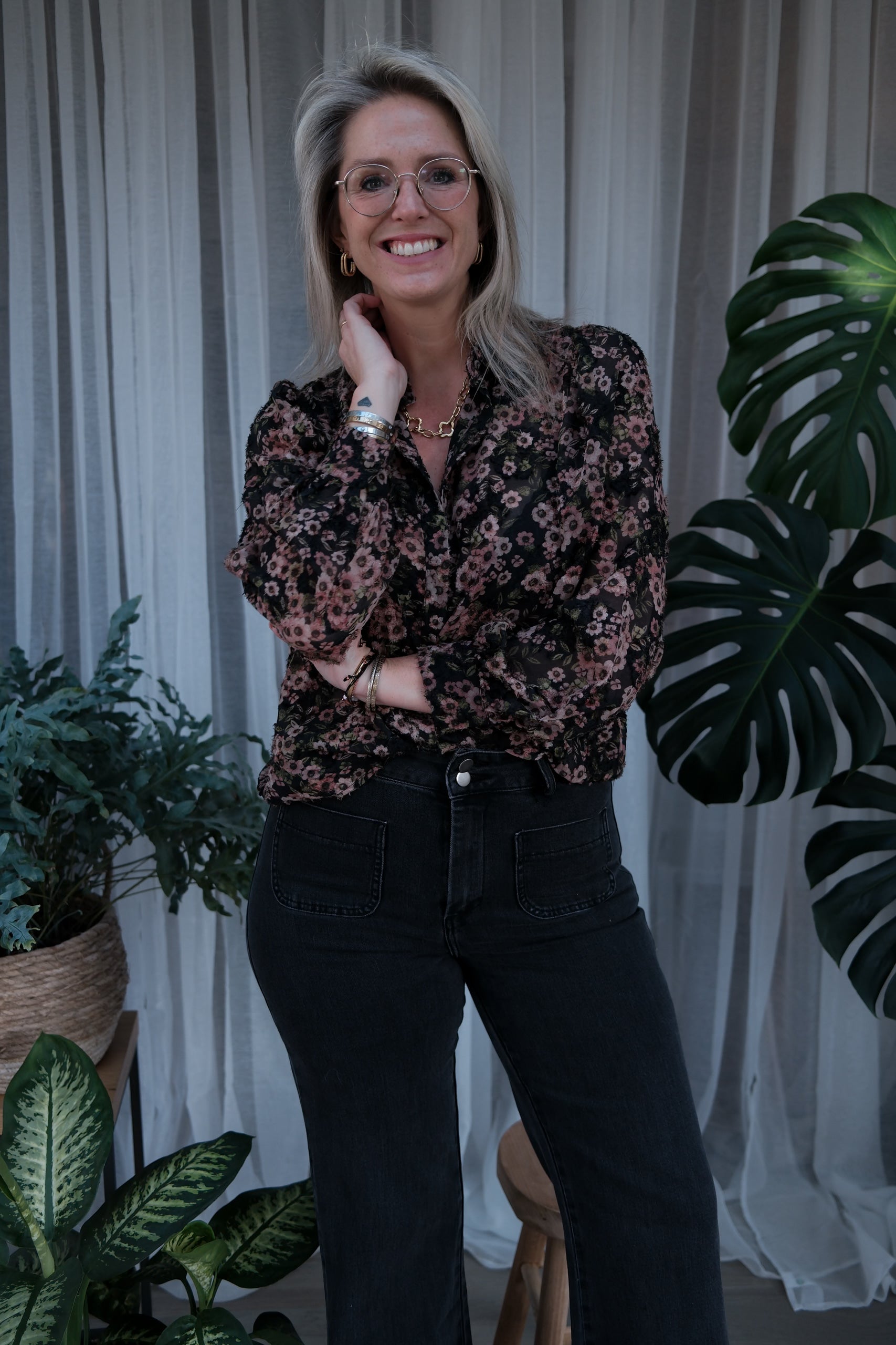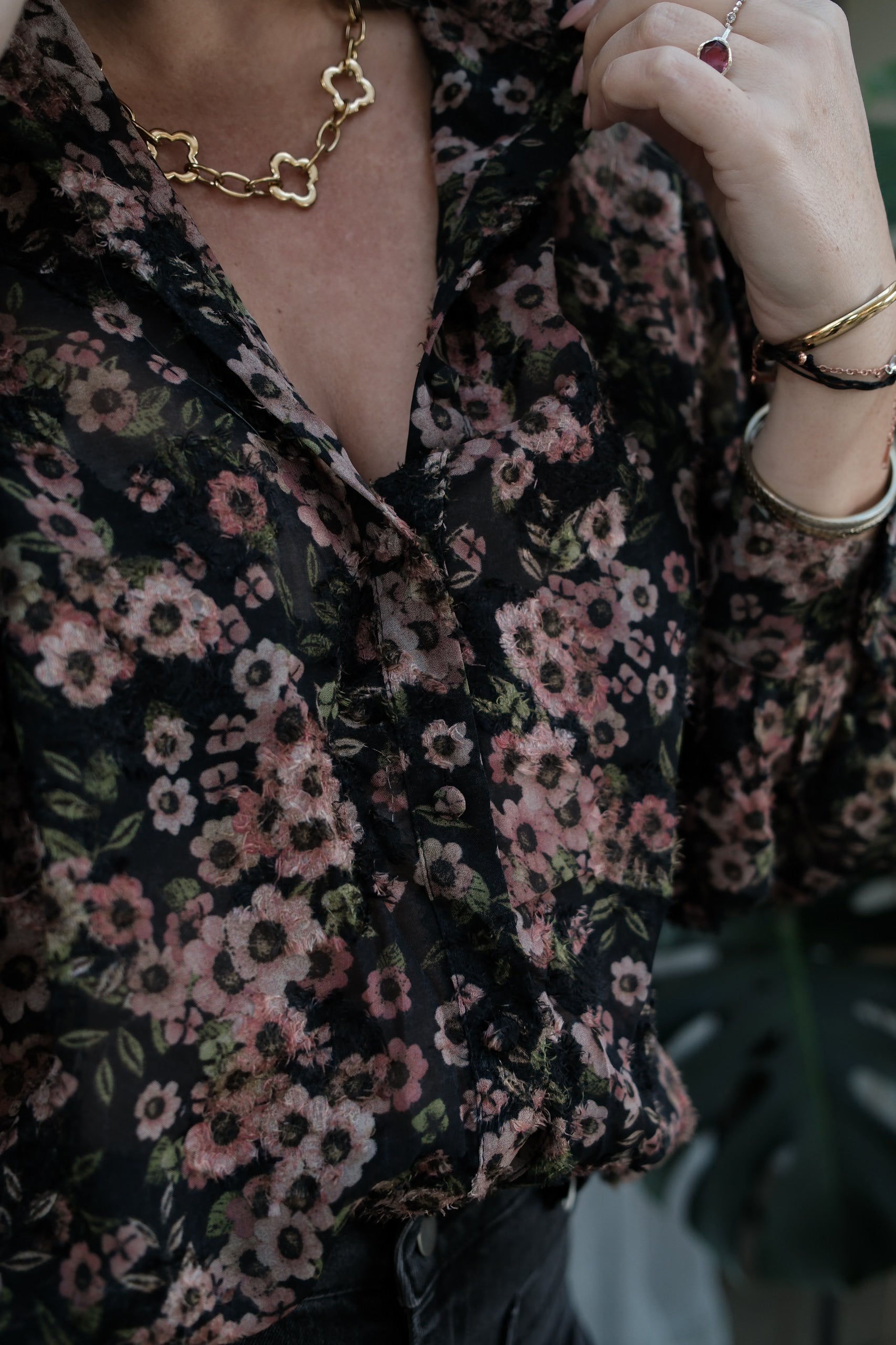 Stijlvol hemdje met een pofmouw in een zachte bloemenprint.