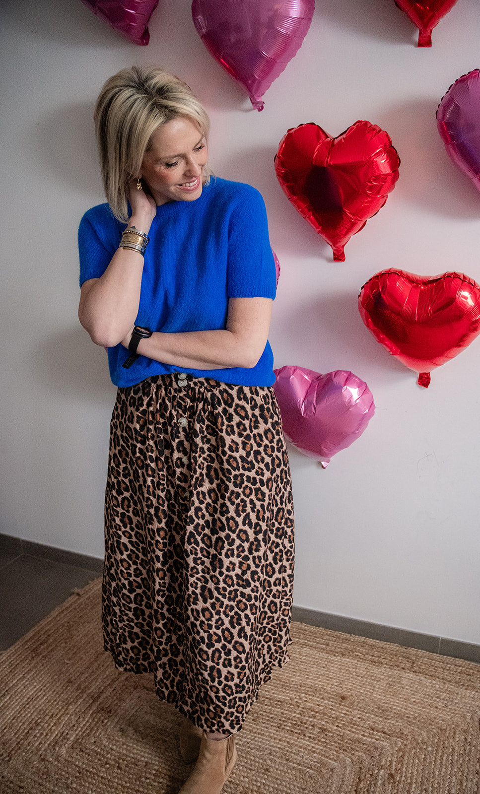 Een midi skirt in panter print met knoopjes in het midden! Verkrijgbaar in maat S/M, M/L en L/XL. valt op maat.